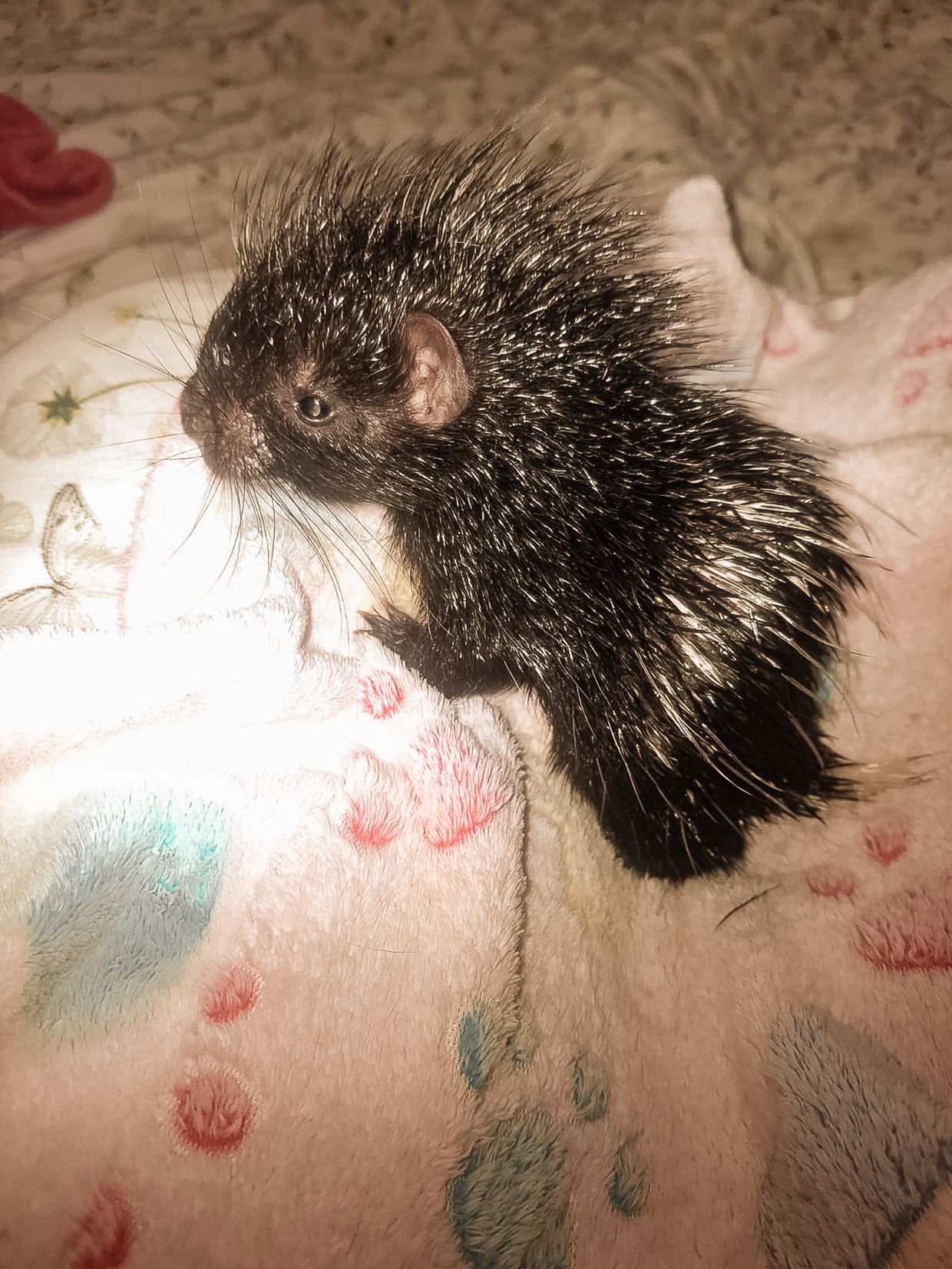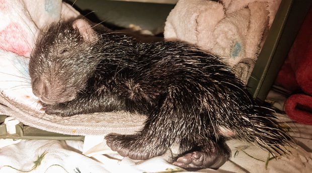 The surviving porcupette had started wandering from the den. Most likely searching. Most likely dehydrated. The group acted quickly and brought the porcupette to our facility for intensive early care. On arrival, the infant required immediate supportive care. Neonatal porcupines rely entirely on their mother’s milk. They cannot regulate feeding intervals on their own.