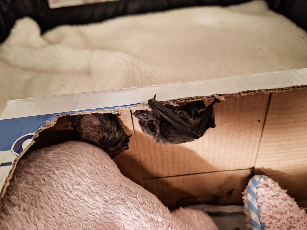 On 21 December, a second patient arrived. A 5 gram female bat, slightly older and stronger than the male had been on admission. She too had survived a cat attack and was estimated to be about a week ahead in development.