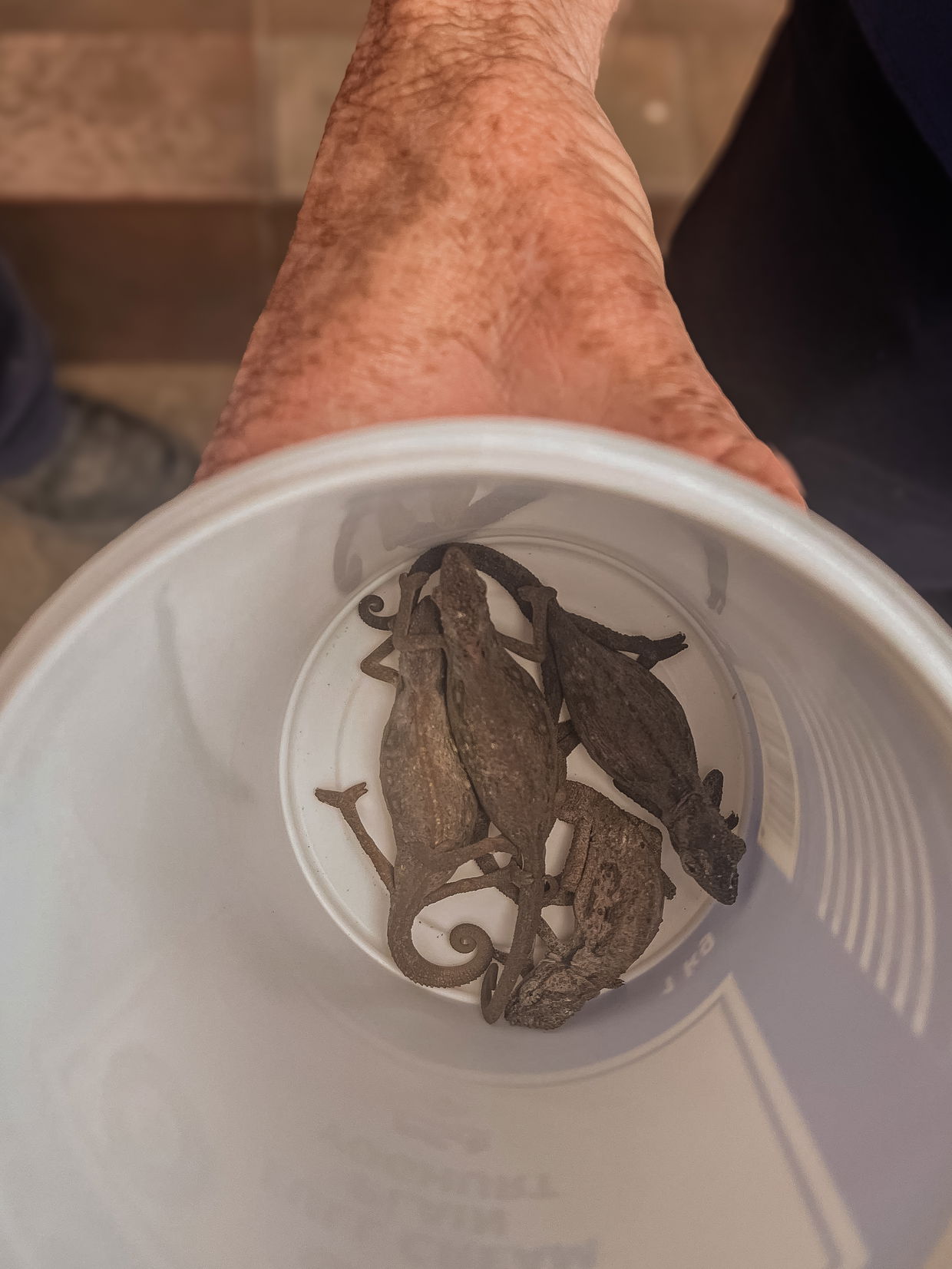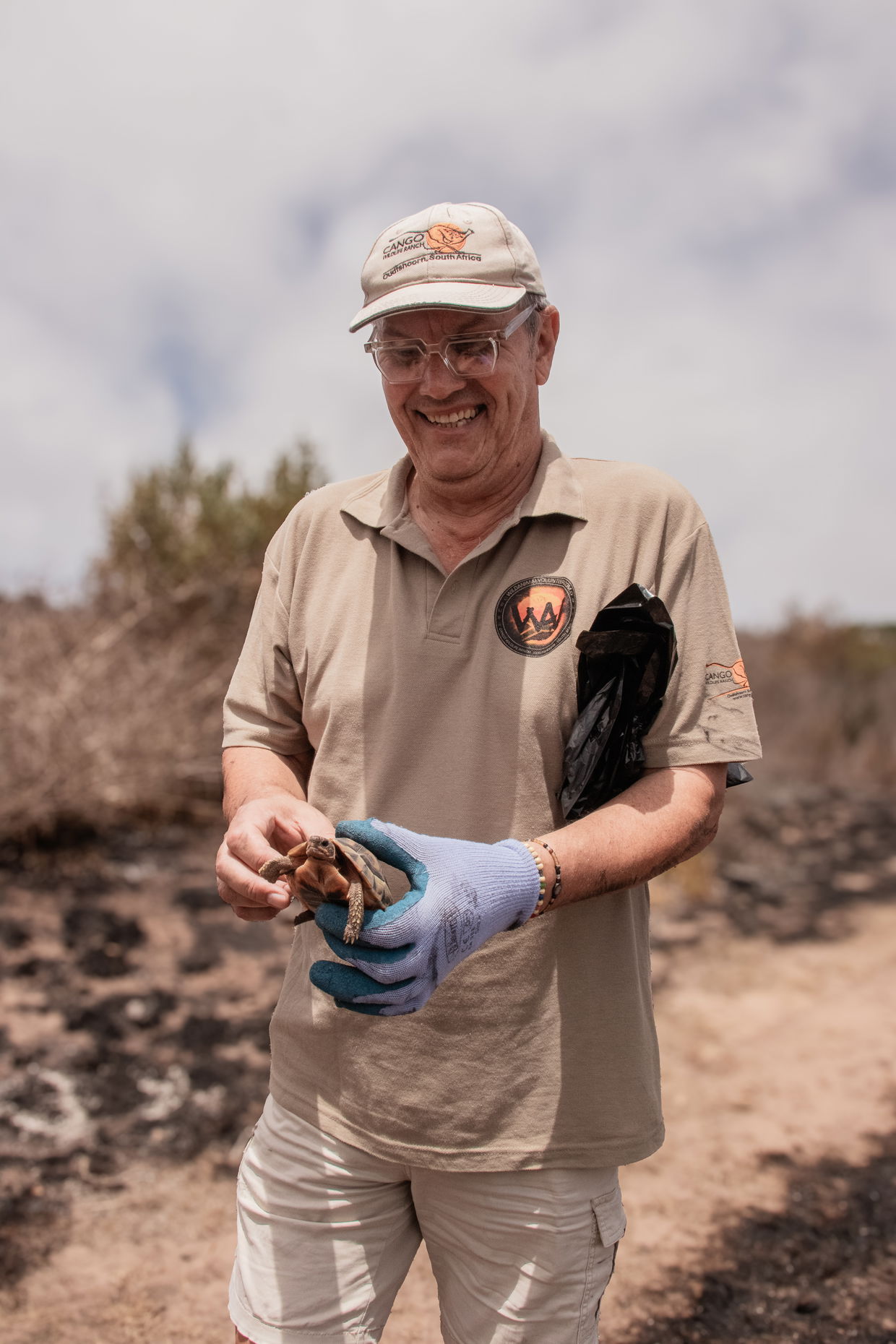 And then came one of the true highlights. Hidden among smoldering pockets of thicket, almost perfectly camouflaged against the charred branches, several Cape Dwarf Chameleons were found alive. This species, listed as Near Threatened, is one of the Western Cape’s small but important treasures. Seeing them cling to life in such harsh conditions was both moving and motivating. Each one was carefully collected and brought to safety. These tiny rescues reminded everyone on the ground that life endures, even in the hardest moments.