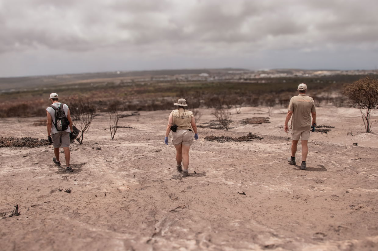 When the request for help went out, our team answered. Fifteen staff members and Wild Animal Volunteers travelled to Dana Bay to assist with the sweep efforts. Their task was to move through the burnt areas which had been declared safe, search for signs of life and support the conservancy in any way possible.