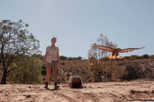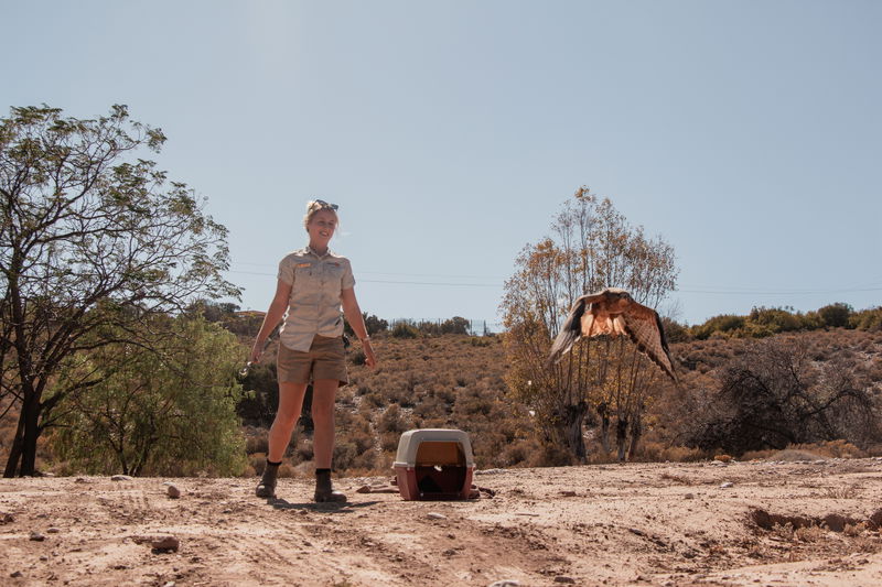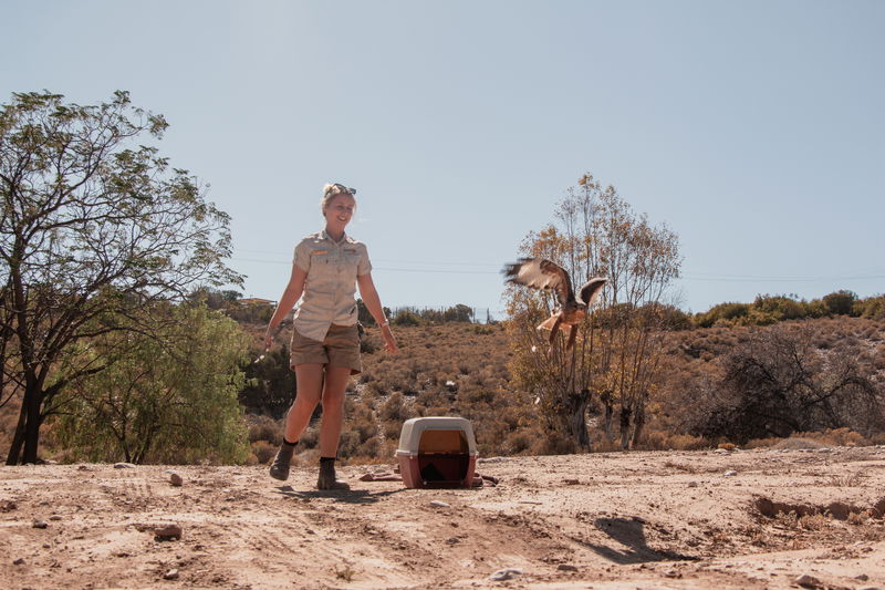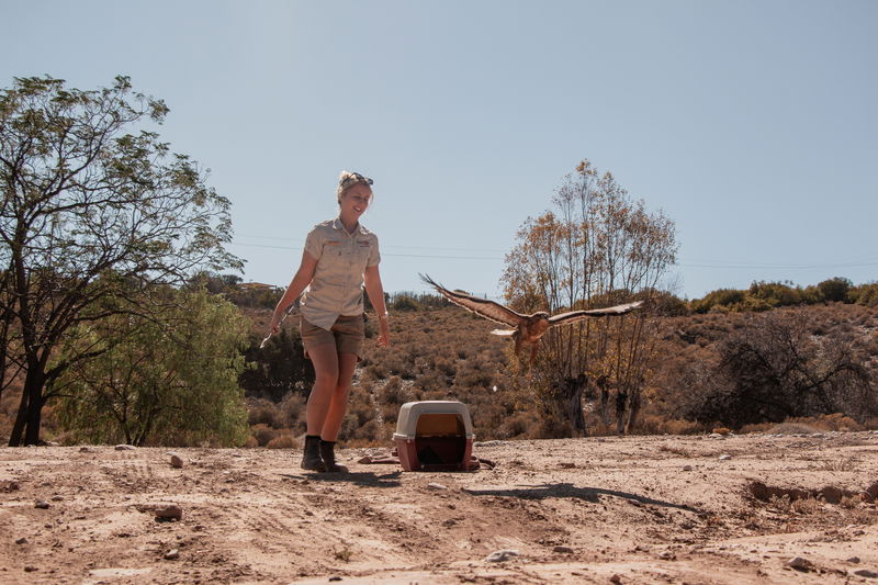 Steppe Buzzards are resilient birds, and despite limited vision in his left eye, his right eye had recovered fully, and we felt most confident in a successful release. Assistant Curator Jenna Lowe returned the Steppe Buzzard to the wild on our private reserve, where he took flight once more.